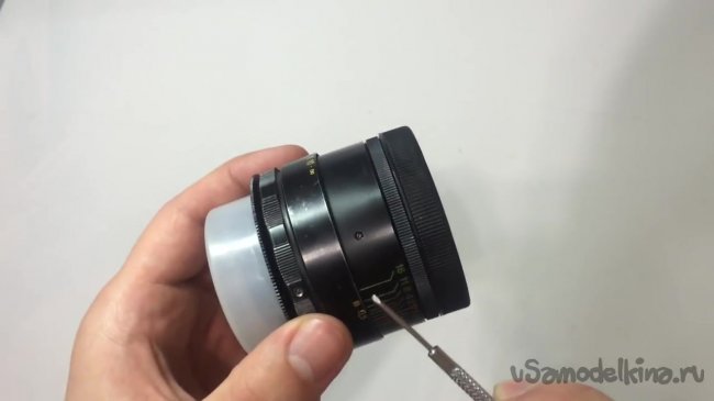 Далее снимаем переходник. По словам автора переходник может не быть установлен в заводском объективе, так что этот шаг может вам не понадобится.
