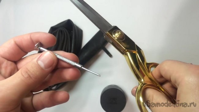 Берем велосипедную камеру, из которой нам нужно отрезать небольшой кусок.