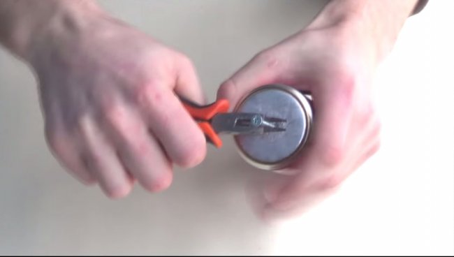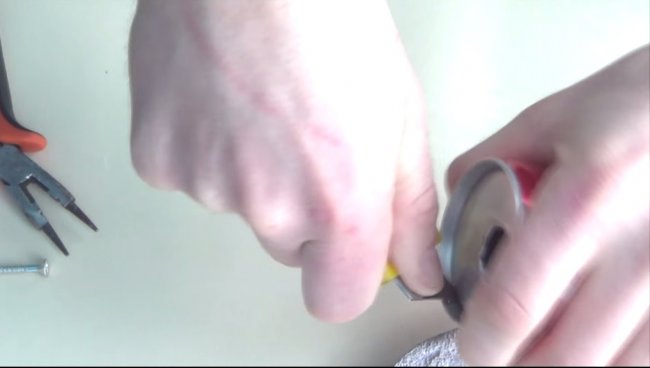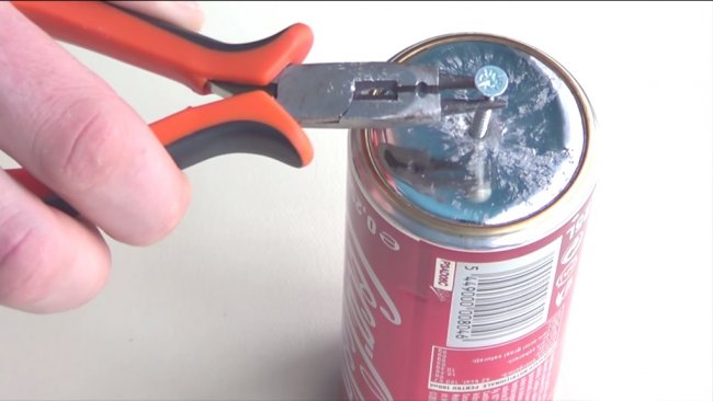 Шаг 6: После этого свинец остыл и снимаем его круглогубцами и выкручиваем саморез