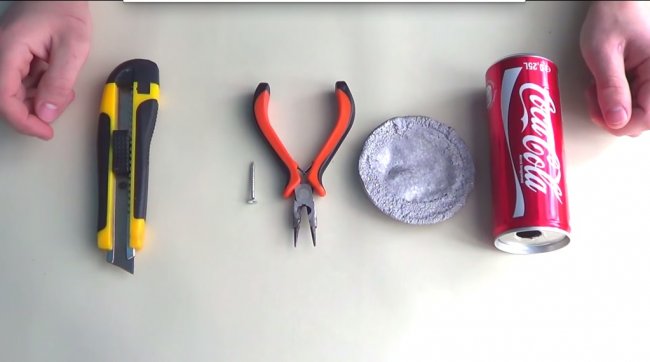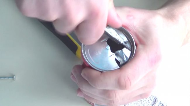 Шаг 1: Для начала нужно надрезать канцелярским ножам верхнюю часть алюминиевой банки