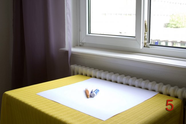 В основном МК снимается именно сверху вниз, если у вас пока нет такой «студии», можно поставить стол у окна, положить лист ватмана, встать лицом к окну и делать снимки выше описанным способом (фото 5).