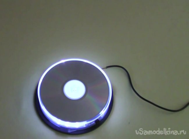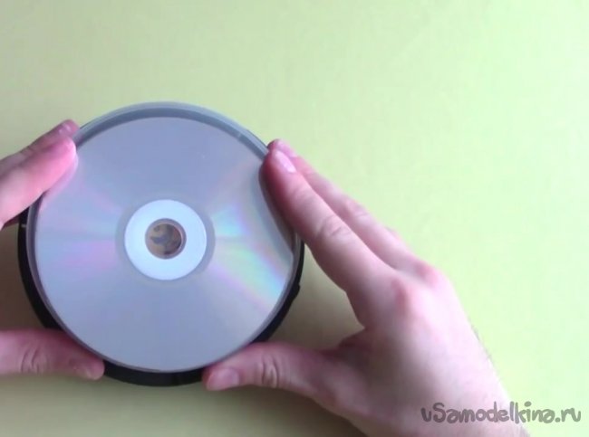 Обрезаем пластиковую часть основы коробки, на которую надеваются диски. Вместо нее приклеиваем крону или любой подходящий источник питания.