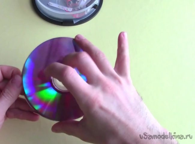 Берем еще два диска и приклеиваем лицевыми сторонами внутрь так, чтобы зеркальные стороны остались снаружи.