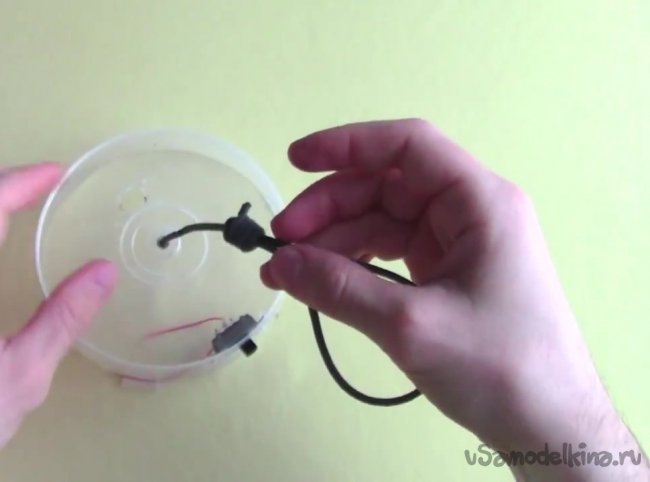 Далее берем любой шнурок, чтобы при желании можно было подвесить светильник и закрепляем на крышке.