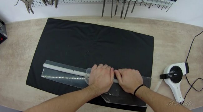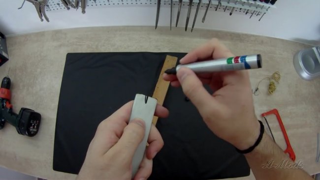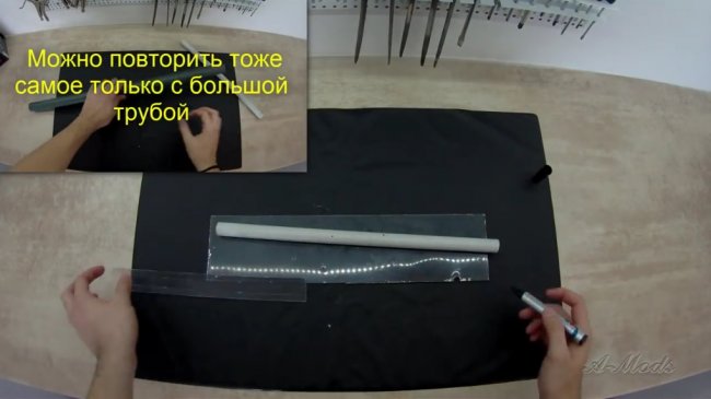Шаг 1: Первым делом в середине трубы делаем метки для рукоятки.