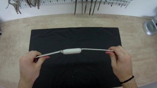 Шаг 3: После этого нагретые участки трубы необходимо продавить с обоих сторон. Например орг стеклом.