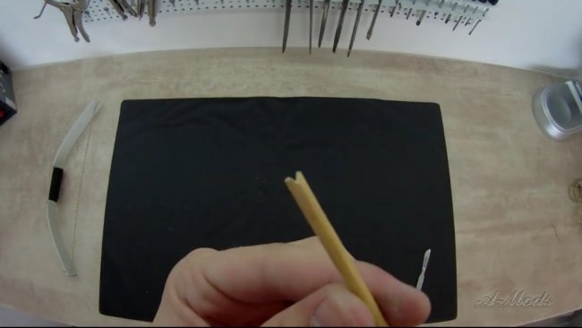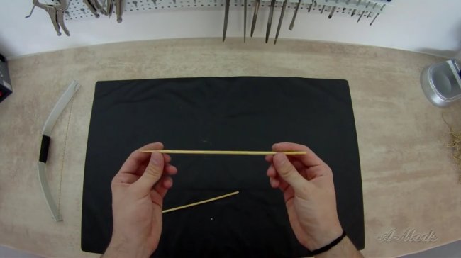 На шашлычных палочках делаем такие надрезы . И можно сделать направляющие из изоленты.