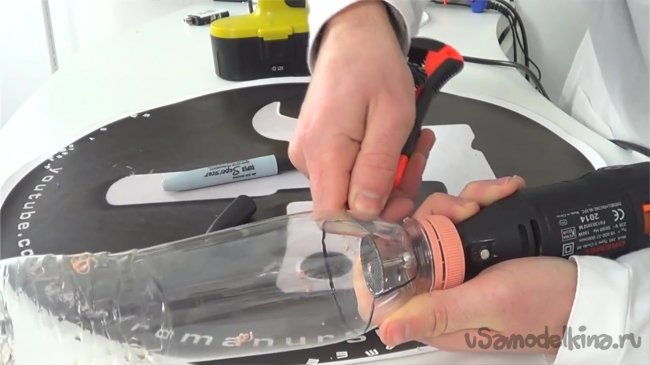 Следующим делом берем маркер и отмечаем на бутылке форму для вырезания.