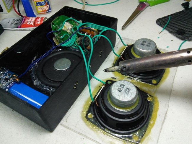 В домашних условиях из старых девайсов и их частей можно довольно легко соорудить вот такой musical box. Его звук ничем не будет уступать Jambox, но из существенных преимуществ можно назвать, в первую очередь, возможность в качестве питания использовать солнечную энергию.
