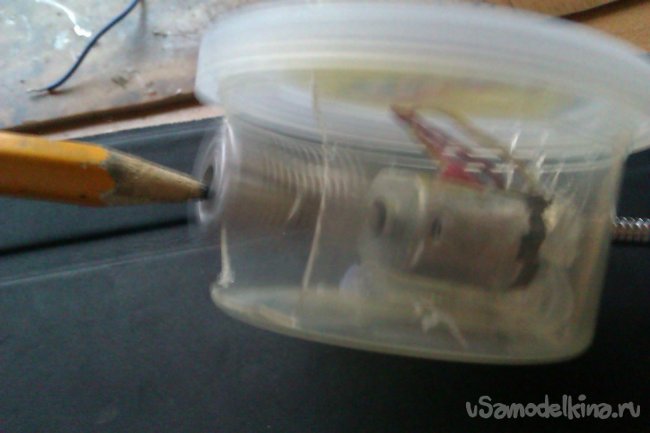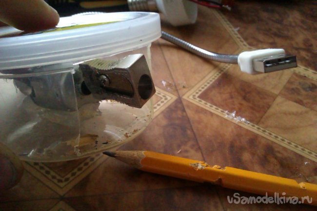 Вместо USB можно также использовать блок питания на 4-5V,но не больше.(Иначе при точении карандаша, точилка будет крутиться слишком быстро)