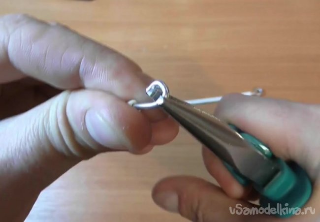 Оба конца проволок нужно закруглить круглогубцами, чтобы получить колечки.