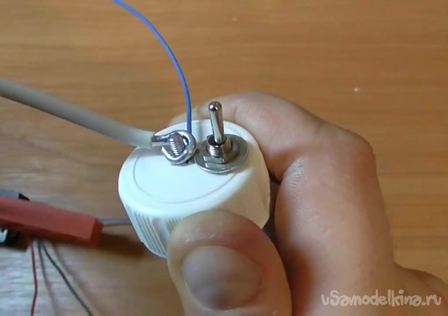 Минус от светодиодов выводим через тумблер и соединяем с минусом от батареек.