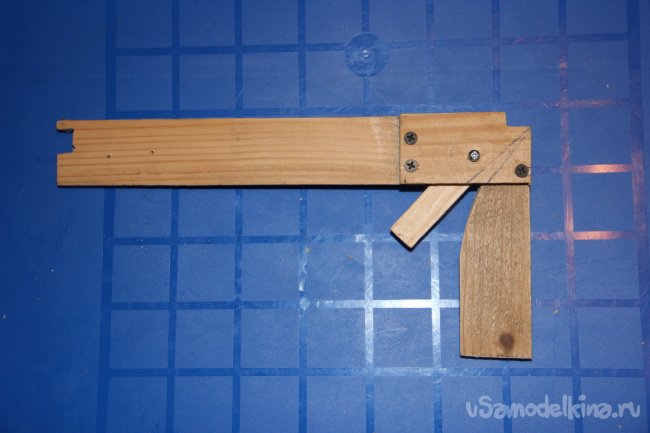Шаг 5: Теперь нам нужен курок. Делаем заготовку размером 100*18. И немного под углом отрезаем край.