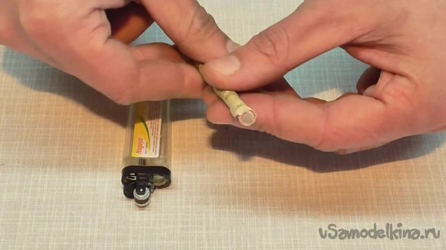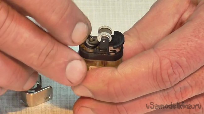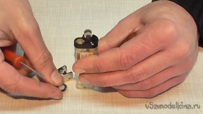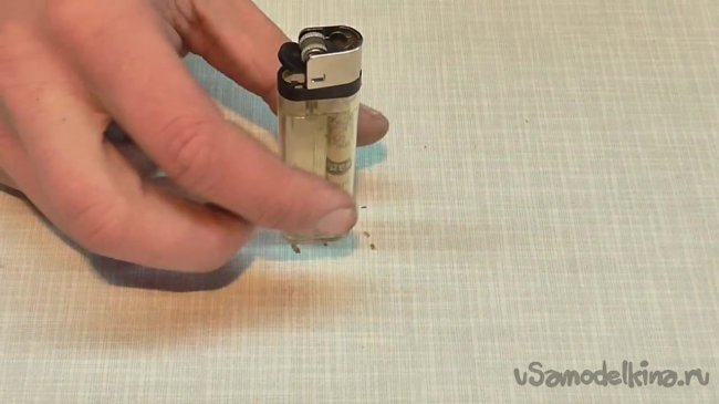 По словам автора идеи, лучше использовать непрозрачную зажигалку, чтобы она не выдавала себя раньше времени. Он же использует прозрачную для демонстрации работы самоделки.