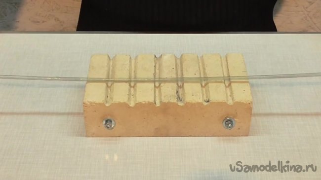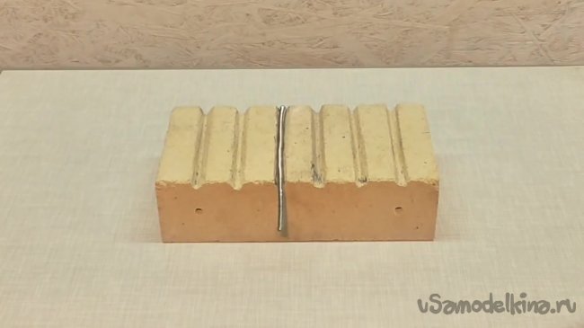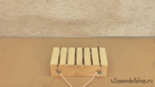 Первым делом необходимо проделать на кирпиче 6 пропилов. Эти пропили необходимы для того, чтобы в них уложить нихромовую спираль.