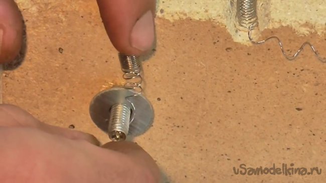 Растягиваем спираль и устанавливаем ее в пропилы.