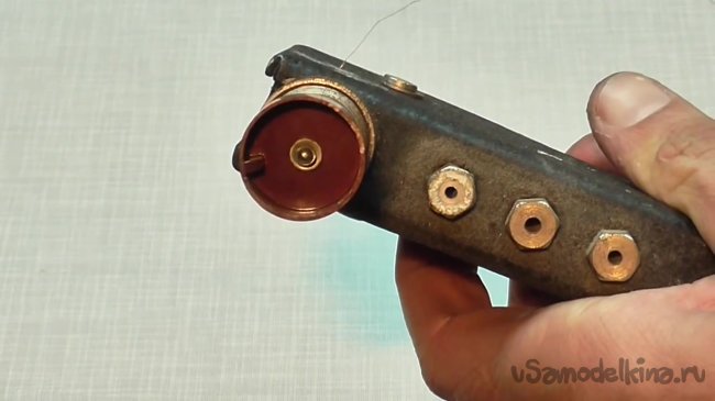 Следует уточнить, что при использовании длинного куска спирали, мощности батареек будет не хватать для разогревания до красна. Поэтому перед окончательно сборкой советуем поэкспериментировать с длиной и укоротить нить при необходимости.