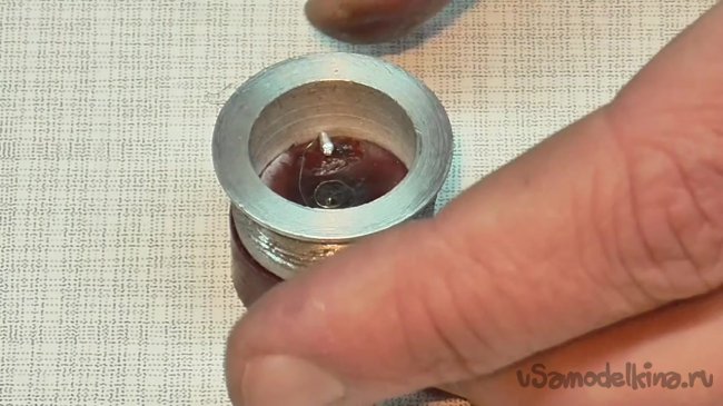 Второй конец спирали нужно закрепить на корпусе детали. Для этого можно использовать кусок алюминия, который можно установить в сам корпус, проделав во внутренней части небольшое отверстие.