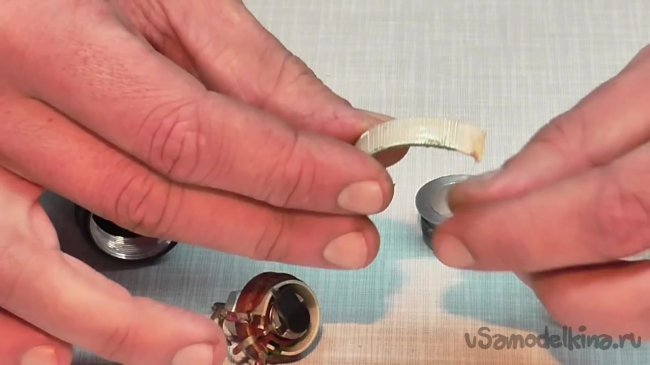 В переменном сопротивлении установлена тонкая нихромовая спираль, которая будет накаляться от электрического тока. Поэтому нужно разобрать переменное сопротивление.