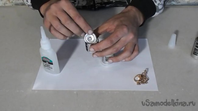 Берем одну половину батарейки и одну шайбу – плюсовую или минусовую. Приклеиваем шайбу к половинке батарейки, то есть на свое заводское место.