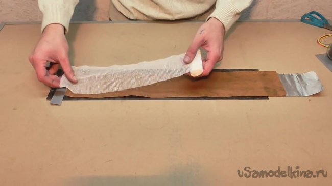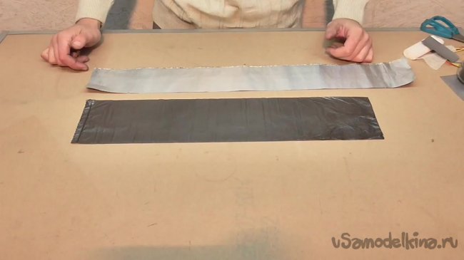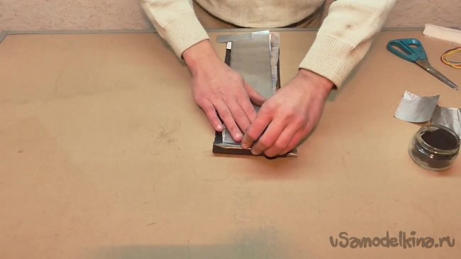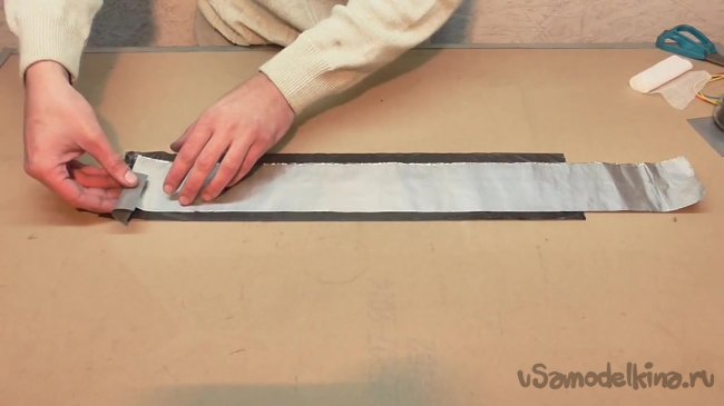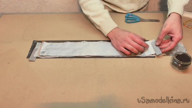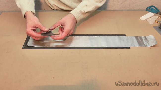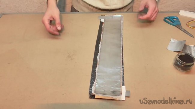 Поверх всей полученной конструкции кладем еще одну полоску фольги.