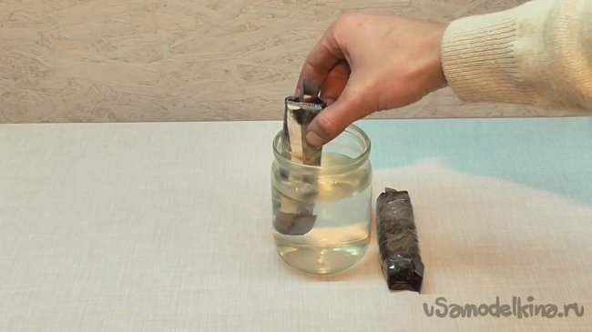 Остается свернуть конструкцию в трубочку, и наша батарейка будет полностью готова. По словам автора, это самый ответственный этап и нужно сворачивать крайне осторожно. Также следует отметить, что перед использованием таких батареек их нужно окунуть в кислотный или щелочной раствор. Автор идеи, например, использует смесь из обычной воды и соли.