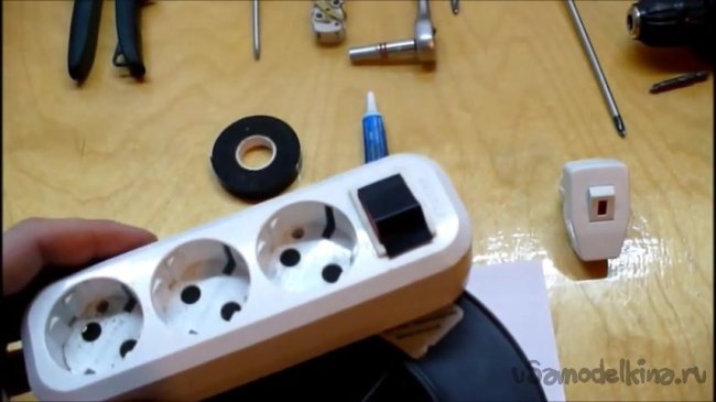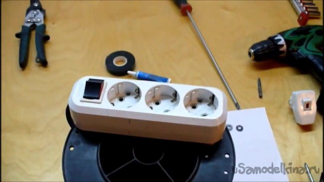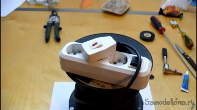 Монтируем на второй конец провода вилку и получаем миниатюрную домашнюю переноску или удлинитель провода. Обойдется такая переноска примерно в 350 рублей не считая стоимости провода.