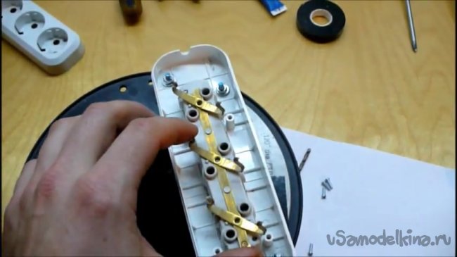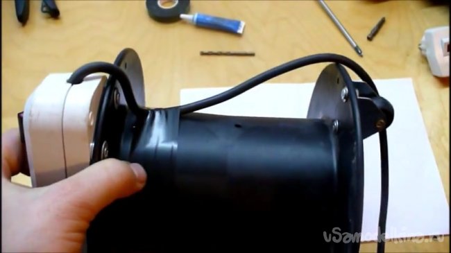 Сам провод нужно зафиксировать на катушке. Таким образом можно получить несложный ограничитель, когда провод нужно будет разматывать до конца.