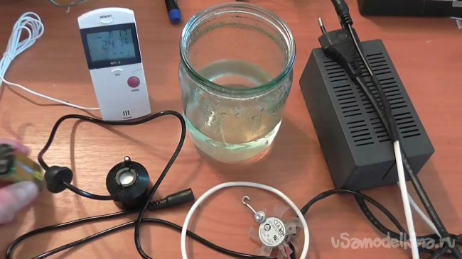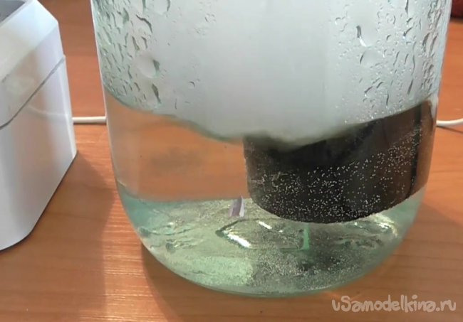 Следует отметить, что по словам автора, наливать слишком много воды в банку не следует, поскольку ультразвуковое устройство образует пар лишь в том случае, когда вода превышает его на 5 мм, поэтому воду придется постепенно подливать, так как она будет улетучиваться.