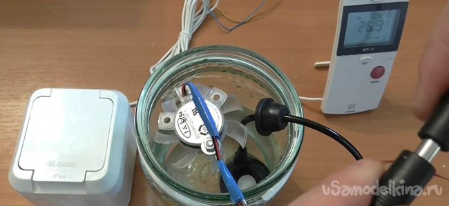Подключаем устройство и вентилятор к источникам питания, то есть к блоку и аккумулятору кроне и включаем устройство.