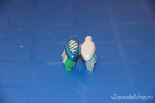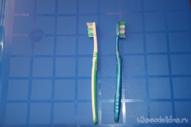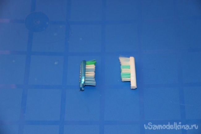 Шаг 1: Первым делом сделайте основание из зубных щёток,чтобы робот скользил. Берём 2 зубных щётки и отрезаем от них сами щётки.