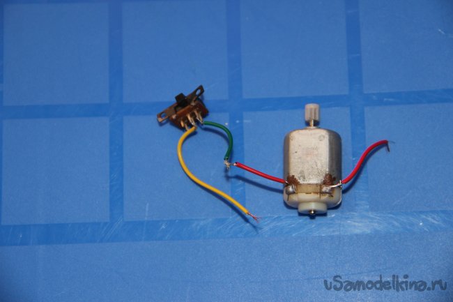 Шаг 5: Приклеиваем моторчик жалом к выключателю. Провода не должны висеть, а быть не много в натяжку.