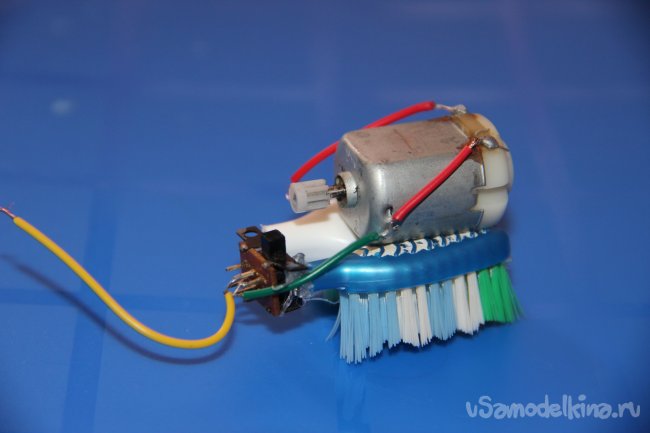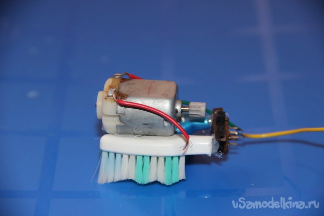 Шаг 4: Приклеиваем выключатель к месту щётки где мы их отрезали.