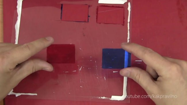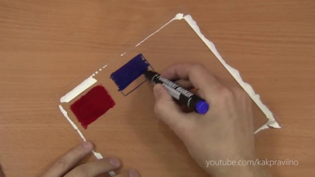 Шаг 2: Теперь сделаем линзы. Для этого подойдёт прозрачный пластиковый стаканчик или упаковка от каких-нибудь товаров. Начертите на плёнке линзы и покрасить их красным и синим маркерами. Затем вырежьте.