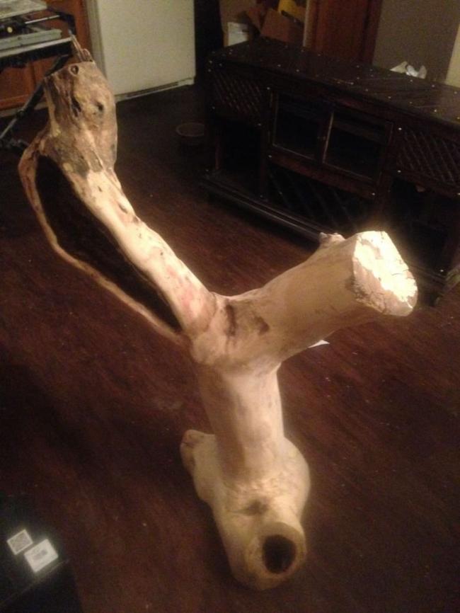 Шаг 1: Подбираем нужную ветку для основания столика. Ветку необходимо обработать - снять кору и хорошенько зачистить наждачной бумагой. Ножка должна ровно стоять и не шататься.