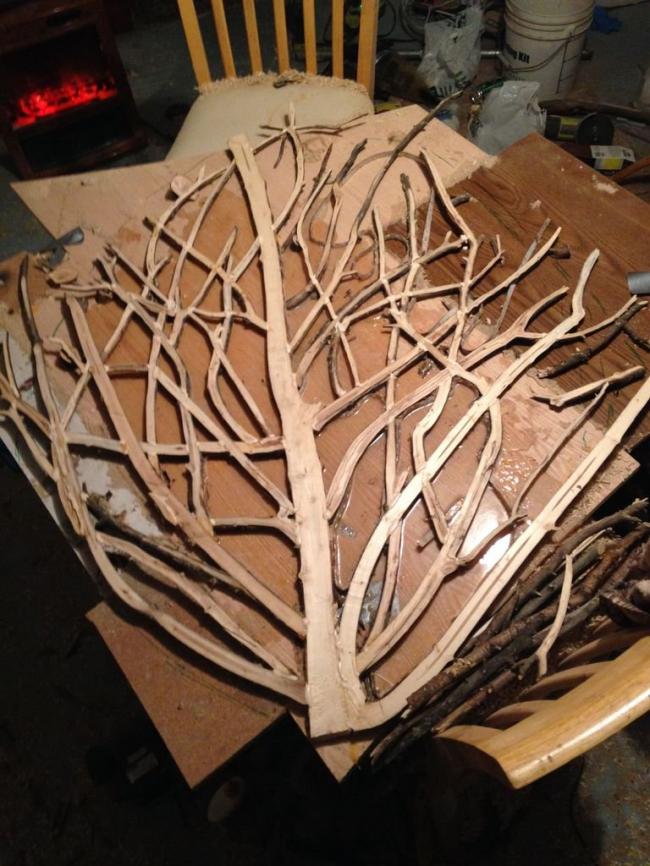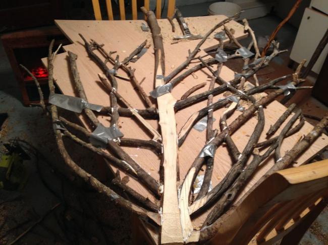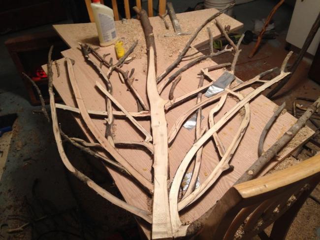 Шаг 3: Положите ветки на столешницу, обрежьте лишнее, приклейте ветви и для надёжности закрепите небольшими саморезами.