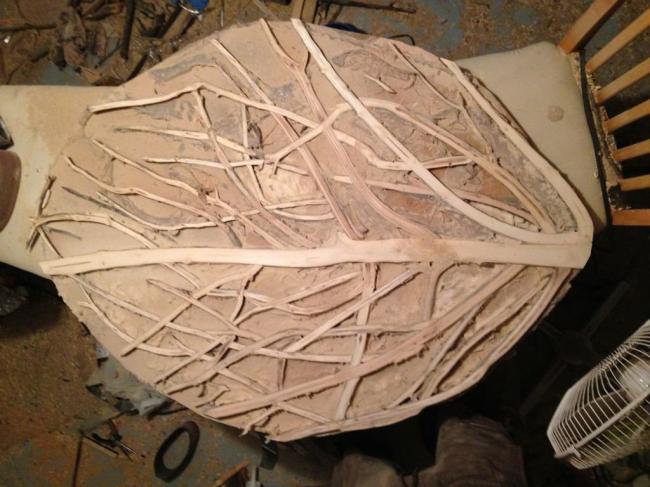 Шаг 2: Делаем столешницу. Если у вас есть ленточная пила, то вы можете взять пышную ветку и разрезать её вдоль на две часть. И с помощью клея можно немного добавить ветвей. Если у вас нет ленточной пилы, то вы можете взять широкую доску и нарисовать на ней пышную ветку, и вырезать её электролобзиком.