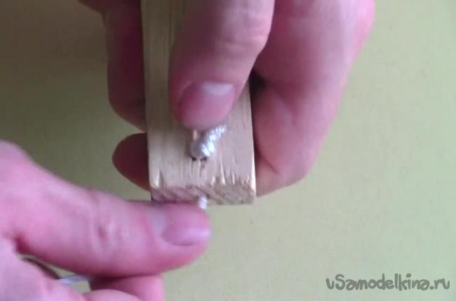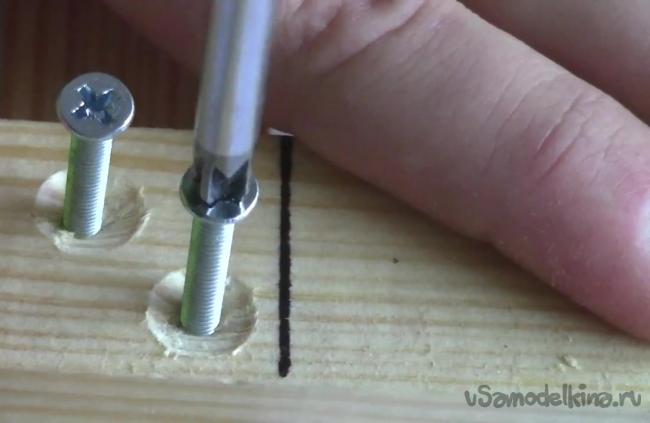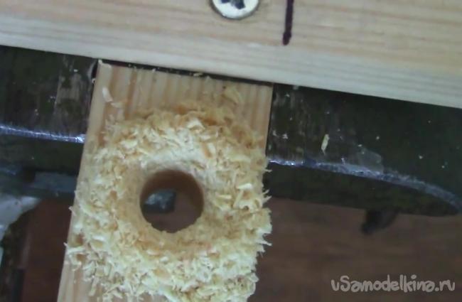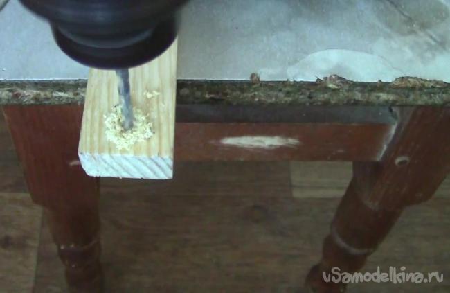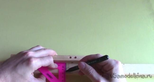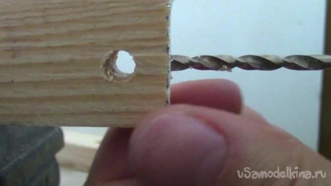 На краях коротких планках делаем сквозные отверстия, идущие к просверленным на предыдущем этапе отверстиям.
