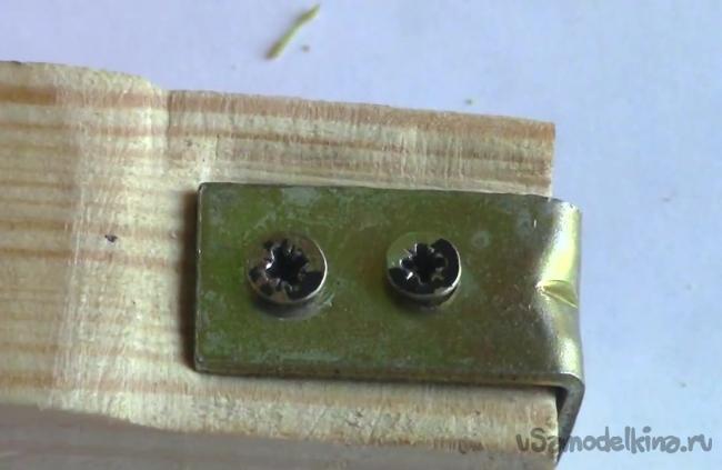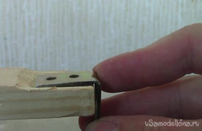 Уголок должен быть установлен на краю длинной планки саморезами, однако он будет мешать вылету стрелы. Чтобы избежать этого, делаем небольшое углубление на планке.
