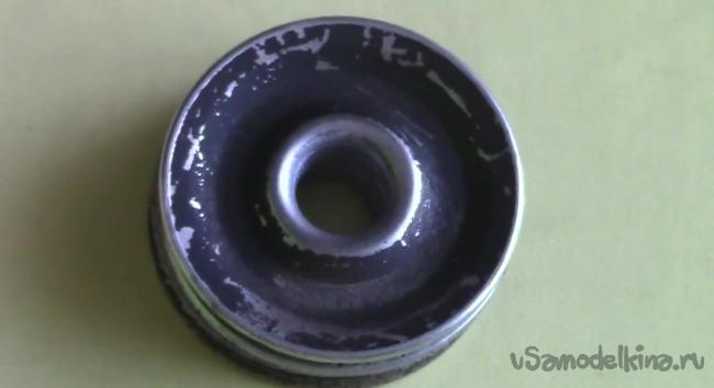 Держатель для стрел можно вырезать из обычной консервной банки, а ручку можно изготовить из куска деревяшки, который следует просто прикрутить на арбалете саморезом. При желании, конечно, можно покрасить арбалет в любой цвет.