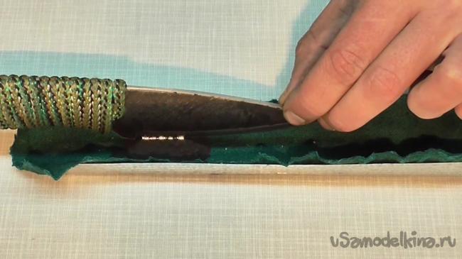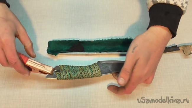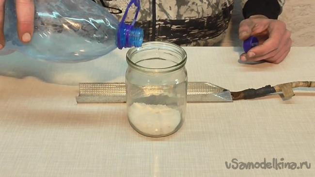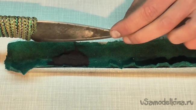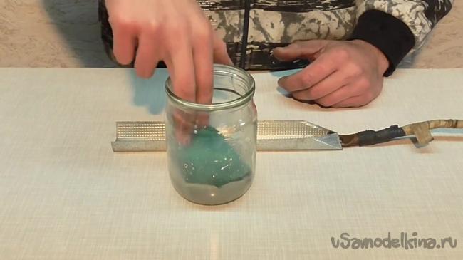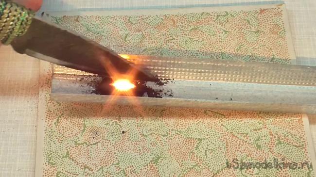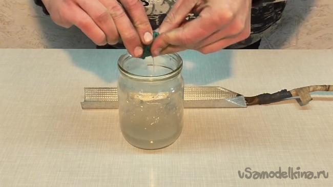 После растворения соли в воде, смачиваем ей тряпку. Это нужно для того, чтобы создать своеобразный предохранитель между металлами, чтобы избежать нечаянного прикосновения ножом о металлическую заготовку, поскольку в таком случае возникнет прямая дуга, в результате чего металл ножа испортится.