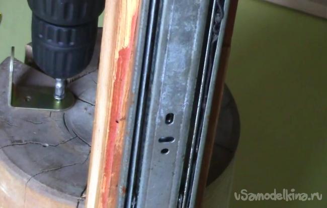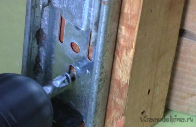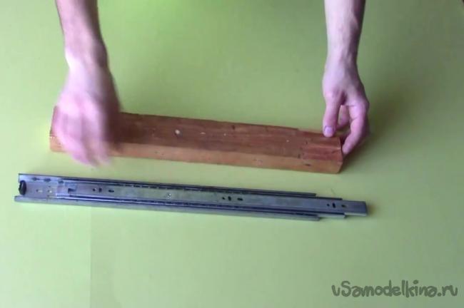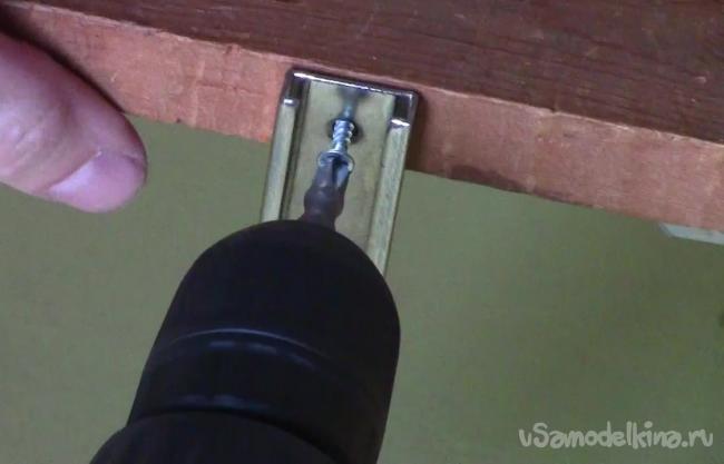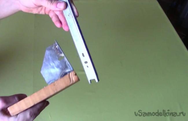 Далее берем металлическую направляющую для мебели и прикрепляем ее к плане опять же при помощи саморезов.