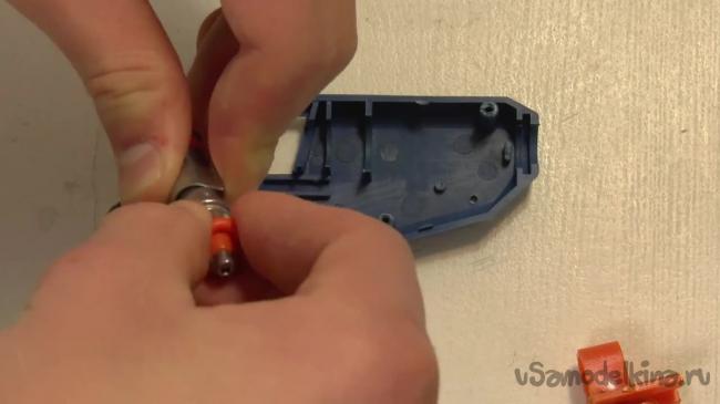 Осталось лишь сделать систему, которая будет подавать стержни, ведь заводскую мы удалили вначале работы. Систему можно сделать при помощи резинки, закрепив ее за хомуты и зафиксировав на корпусе одной кнопкой.