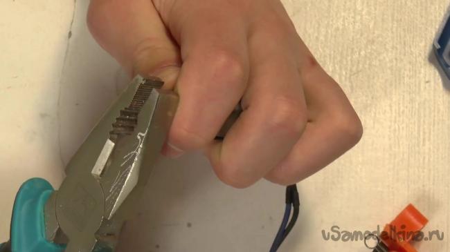 Сам носик клеевого пистолета нужны слегка сплющить. Делать это можно при помощи плоскогубцев, но стоит быть аккуратным, чтобы не переусердствовать. Если у вас, как у автора, окажется, что носик изготовлен из пластика, то после сплющивания можно его намотать скотчем, который устойчив к температуре. Таким образом мы уменьшили пространство для клея и на выходе он будет намного тоньше.