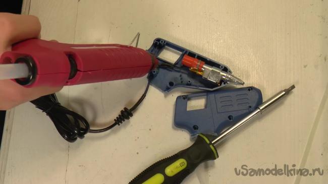 Сначала нужно разобрать клеевой пистолет.