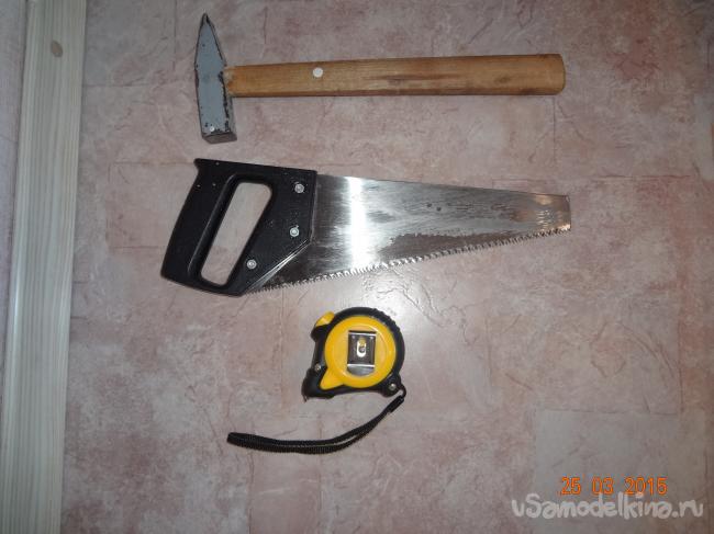Из инструментов необходимы ножовка, молоток, рулетка и карандаш.