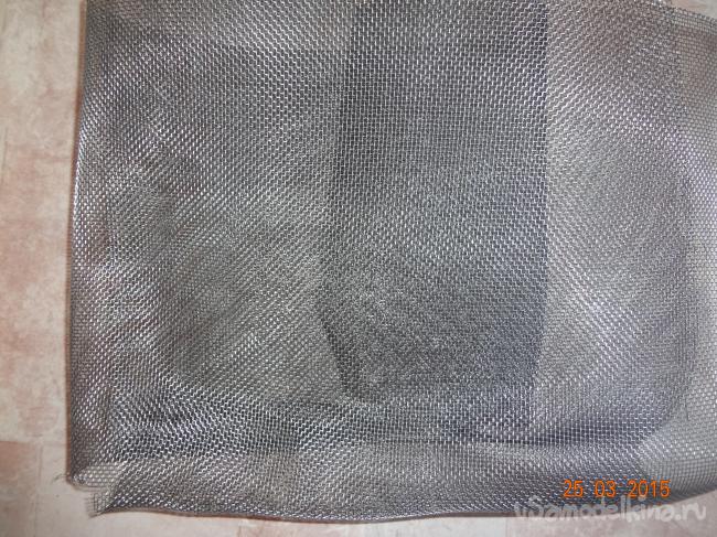 Сетку тканую лучше изначально купить в магазине нужного вам размера, чтобы не было необходимости её резать дома, в данном случае нам понадобится с размерами 60х68 см. Выглядит она так (для наглядности согнута).