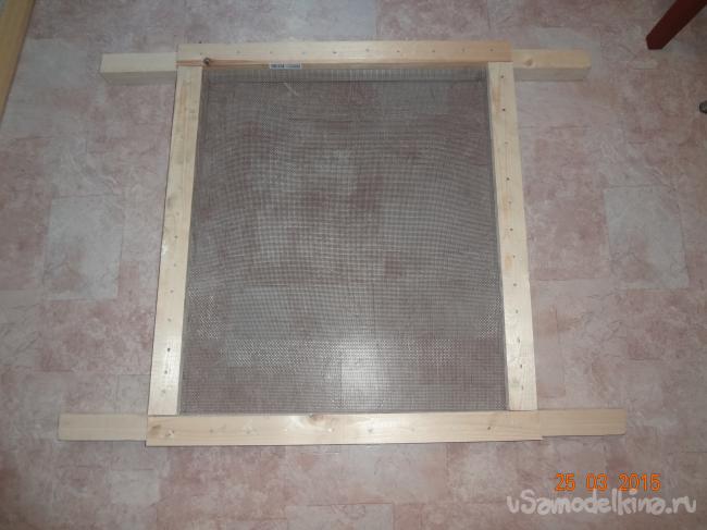 В итоге получаем компактную, надежную, недорогую и удобную сетку для просеивания песка с ручками с обеих сторон.