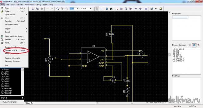 Для того чтобы сделать печатную плату я использовал программу «DipTrace» эта прога удобна тем, что после того как мы собираем в ней схему ее можно легко конвертировать в печатную плату.