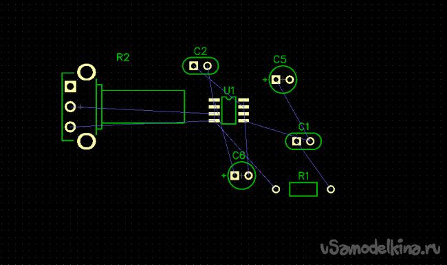Выставляем элементы так чтобы они занимали как можно меньше места на плате и выполняем трассировку